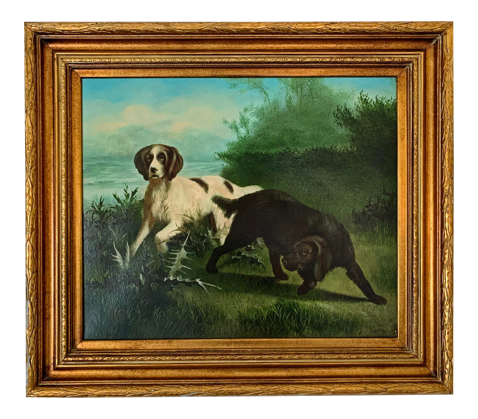 Late 19th Early 20th Century Hunting Dogs In Landscape American School Oil Painting Chairish