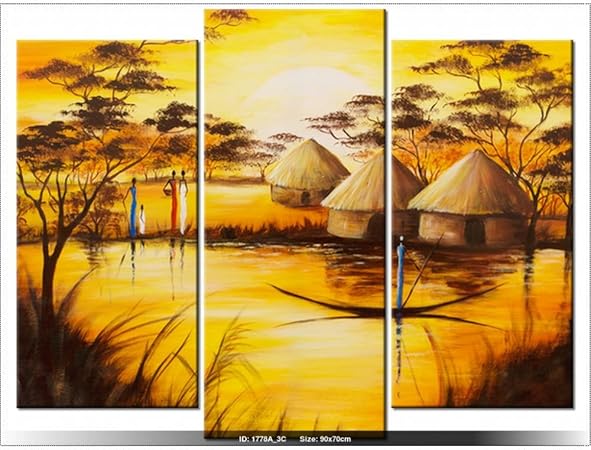 Tableau Peinture à l'huile Afrique Africain 14 tableau Tableaux Paysages Africains Arts Reproductions, peinture à l'huile sur toile de lin