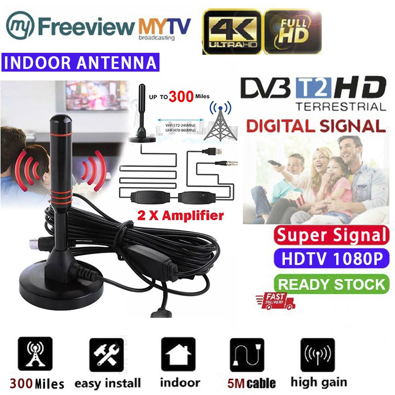 With Dual signal Amplifier ] Super signal With two Signal Amplifier Booster HD 1080P 300Miles Aerial digital antenna antenna uhf vhf 25db HDTV indoor antenna suitable for dvbt2 MYTV MYFREEVIEW TV |