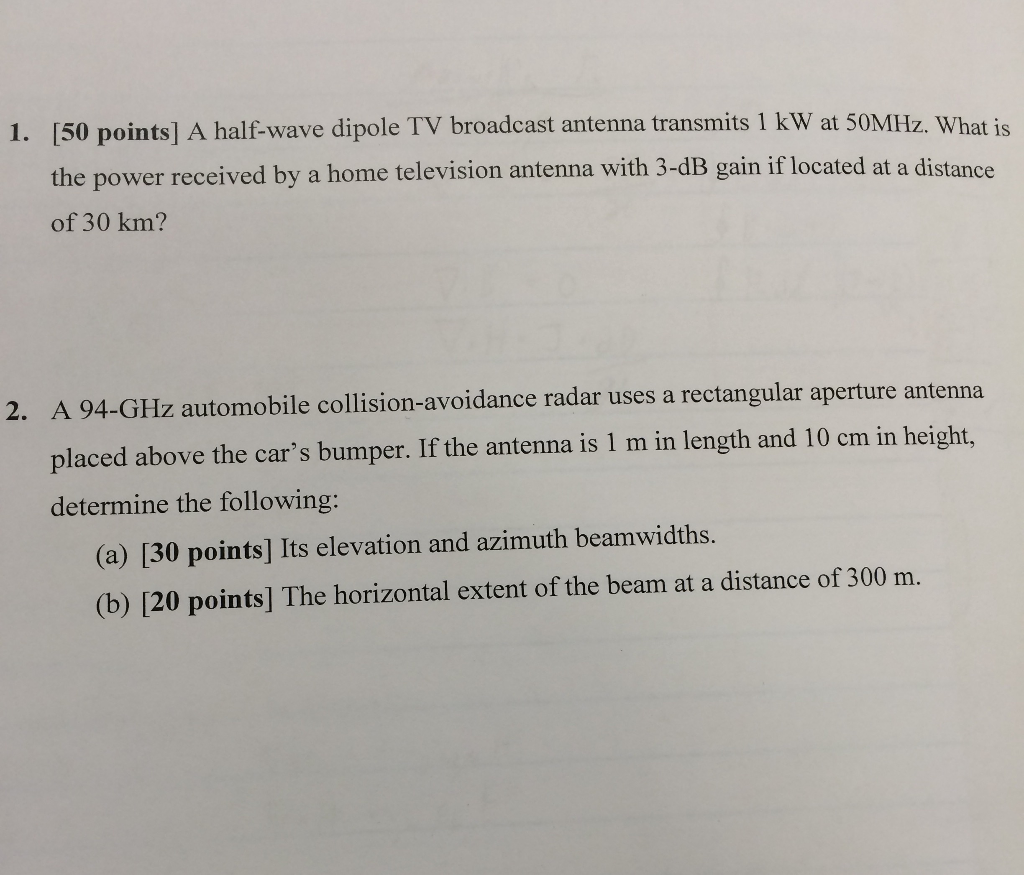 A Half Wave Dipole Tv Broadcast Antenna Transmits Chegg Com